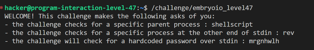 1 2 bash /challenge/embryoio_level2 <<< pkovncmc