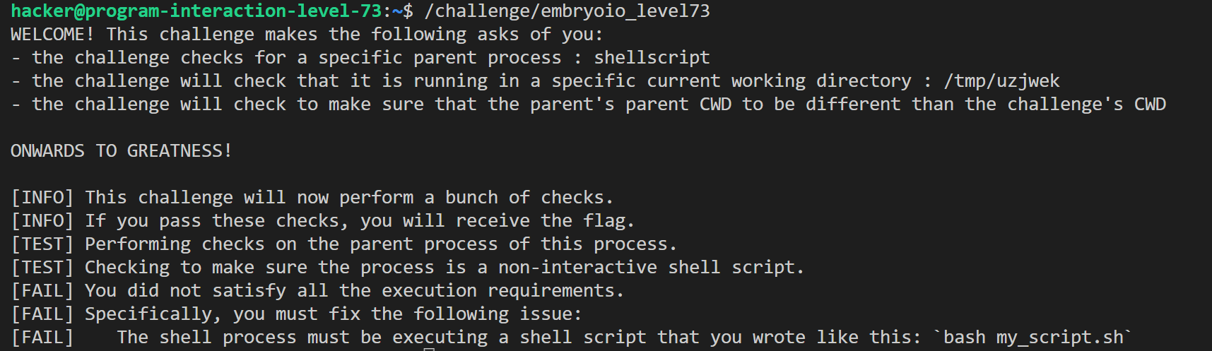 这里一开始被/dev/stdout误导了,一直写的是cat /dev/stdout,后面才反应过来/challenge/embryoio_level的输出就是stdout了